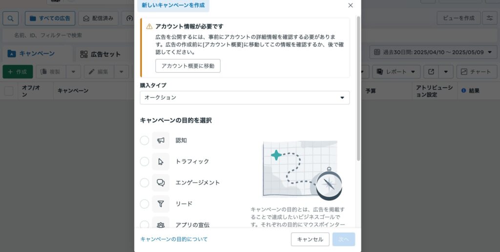 キャンペーンでは広告の目的(例えば、売上増加、ブランド認知度向上など)を設定し、広告セットではターゲットとするユーザーの属性(年齢、性別、興味関心など)や、広告を配信する場所(Facebook、Instagramなど)を設定します。