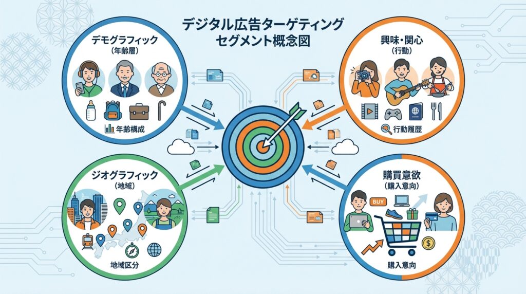 Yahoo!ディスプレイ広告の最大の強みは、詳細なターゲティング機能です。「誰に広告を届けるか」を精密に設定できます。